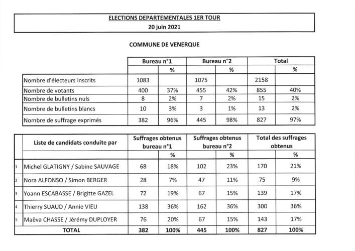 Résultats ELECTIONS DEPARTEMENTALES 1er tour – scrutin du 20 juin 2021