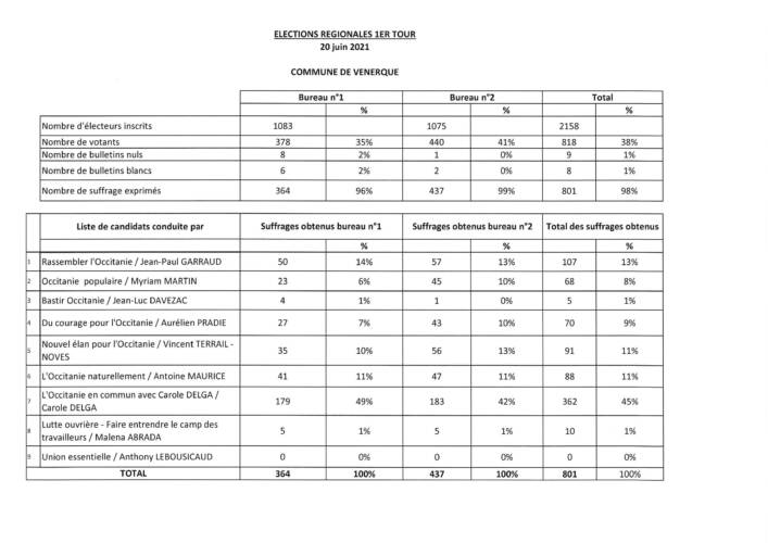 Résultats ELECTIONS REGIONALES 1er tour – scrutin du 20 juin 2021